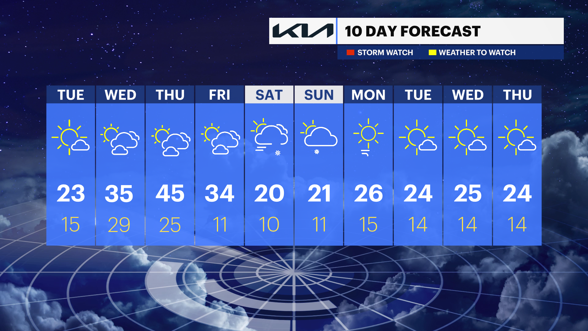 Temperatures this week stay below normal, rebounding only on Thursday before it returns quickly into the weekend. Thursday's high will be in the lower to mid-40s.
