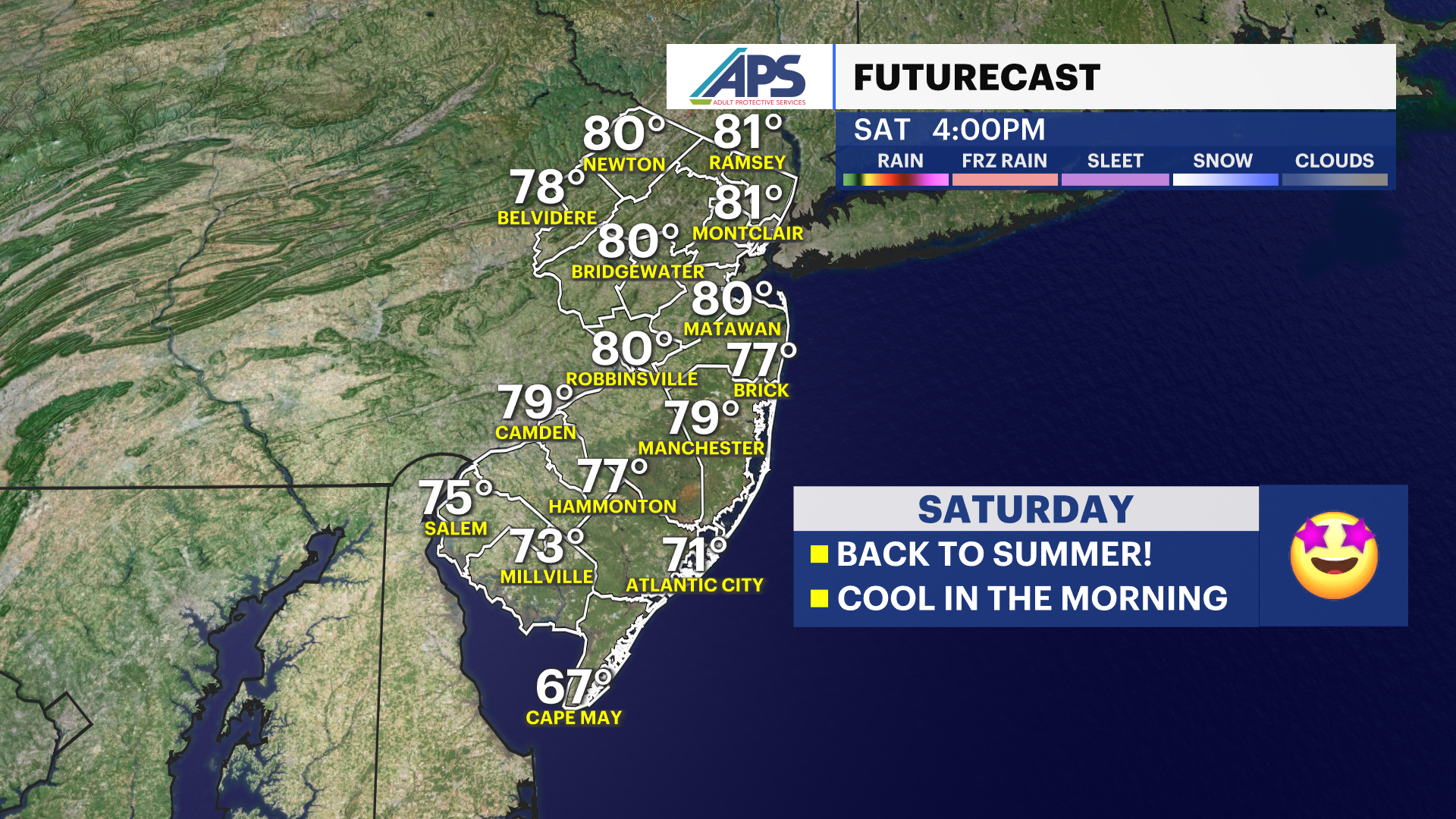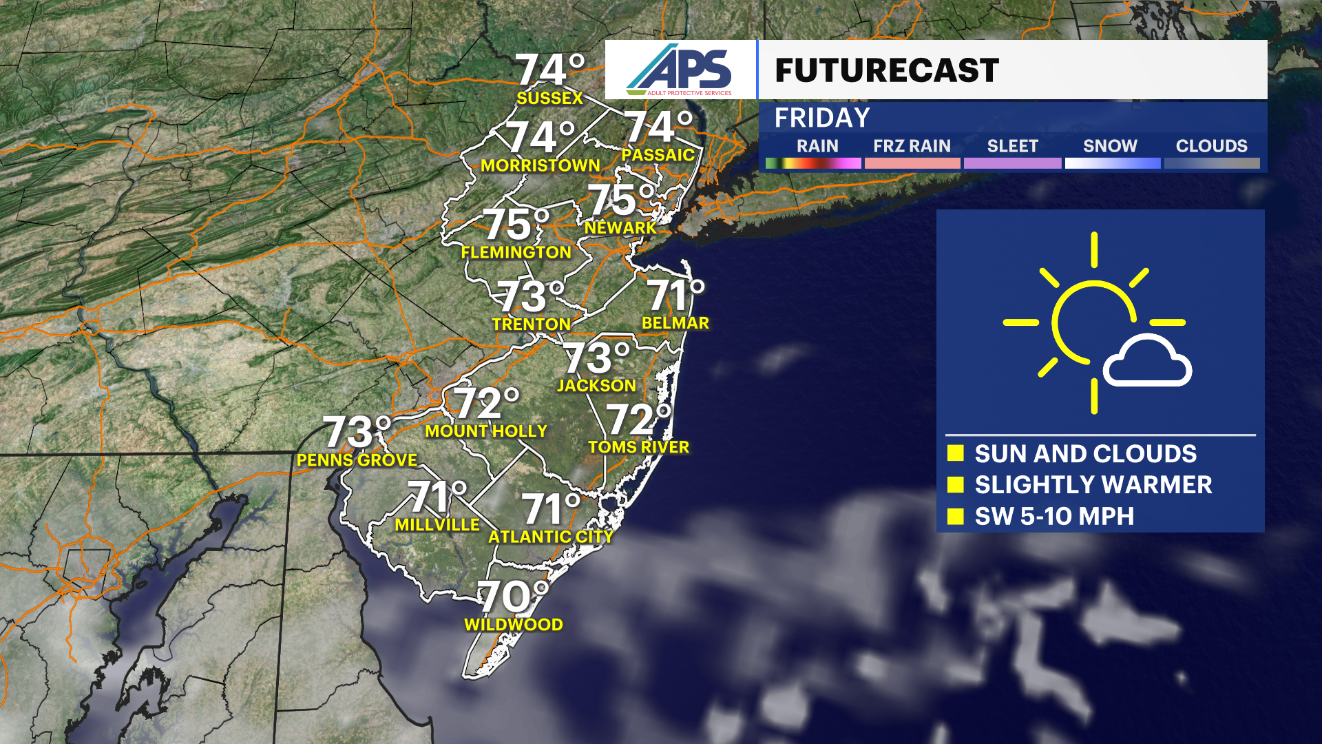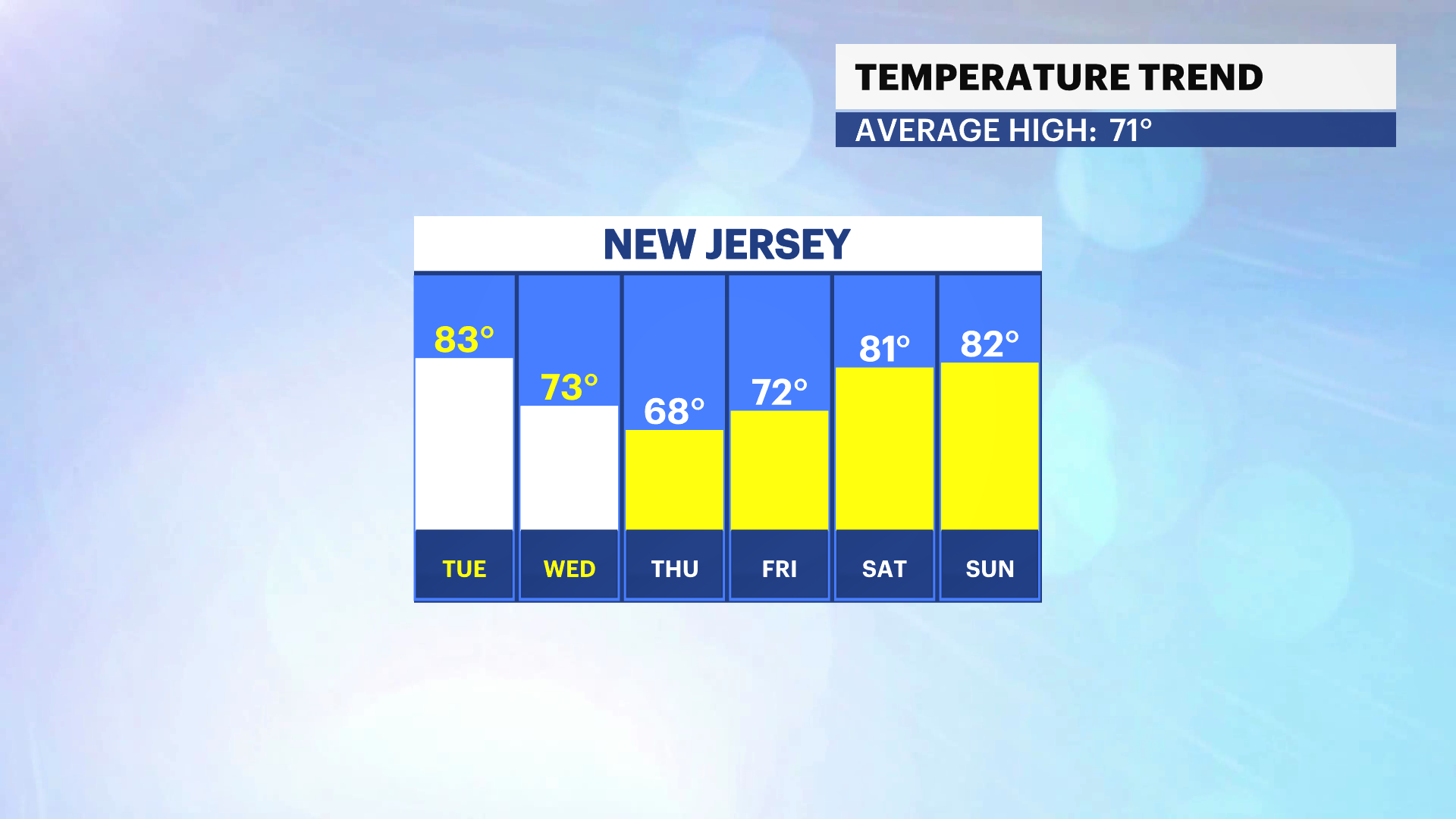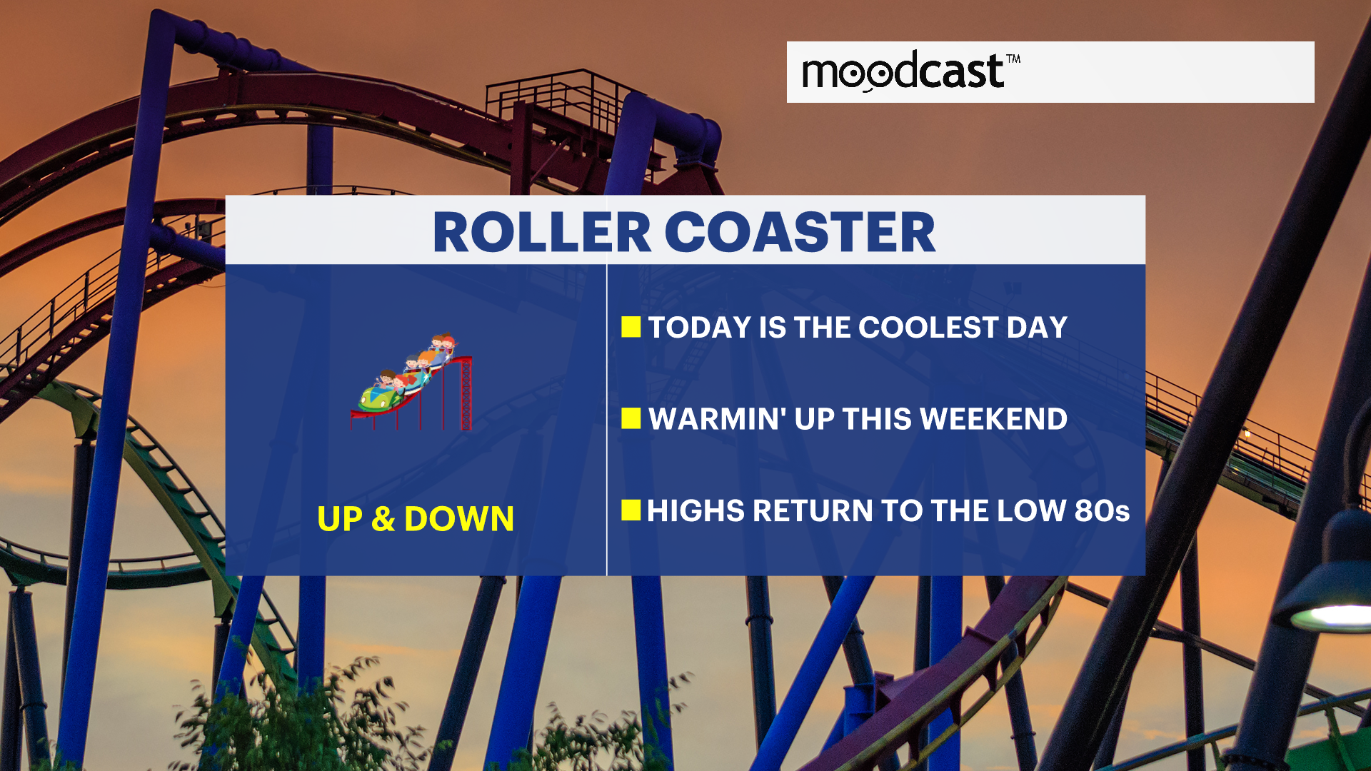 Cooler, sunny, and not as breezy but temps rebound by the weekend